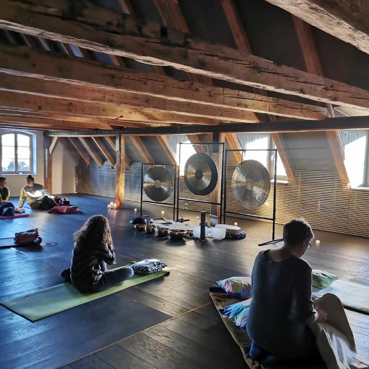 Tauche ein in ein Meer aus Instrumenten wie: Tibetanische Klangschalen, drei großen Gongs, Monochord, Kristallschalen, Ocean Drum, Koshi und vielen mehr.