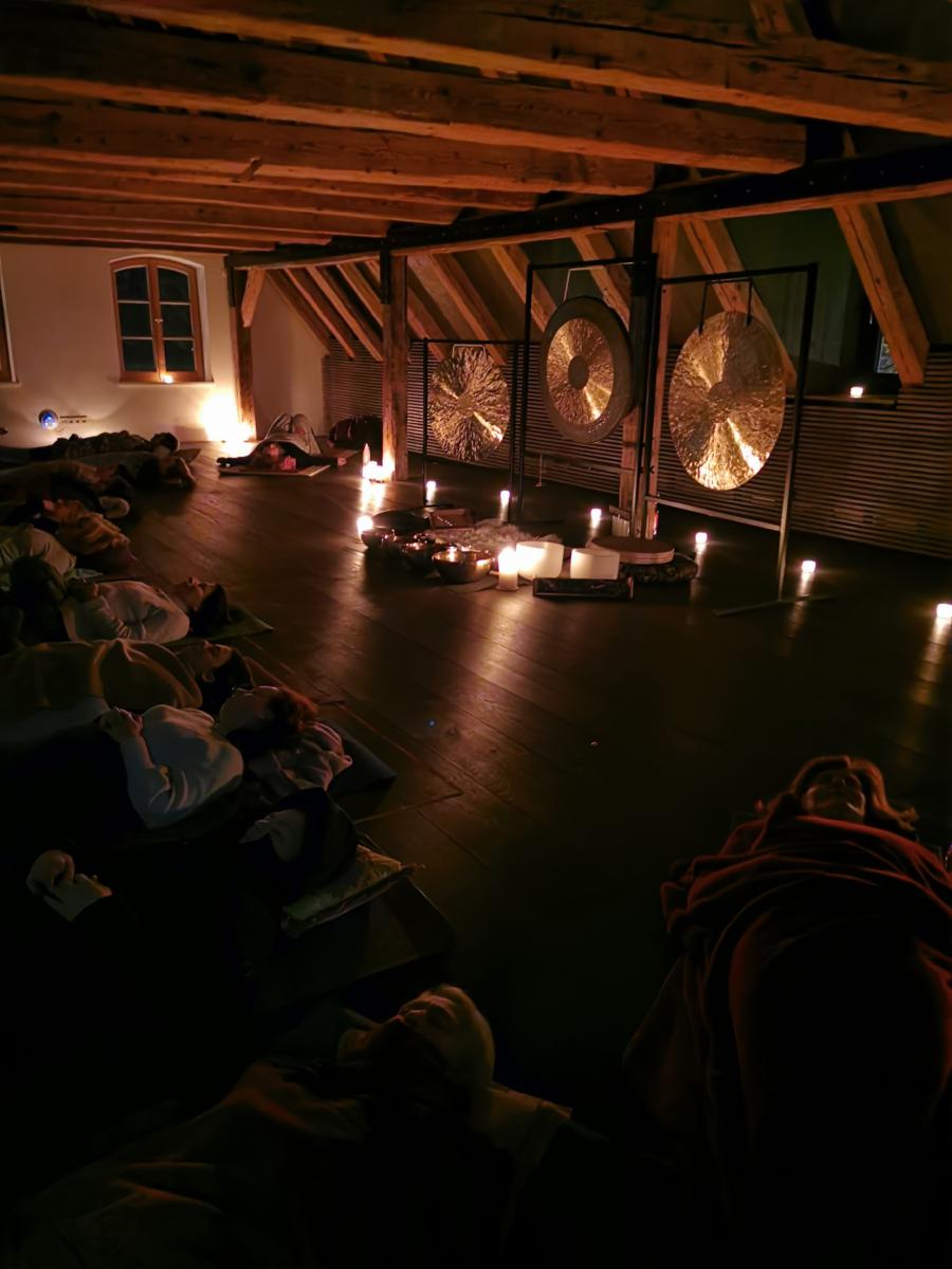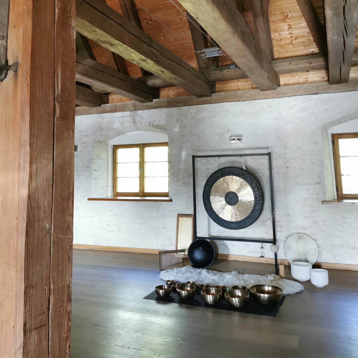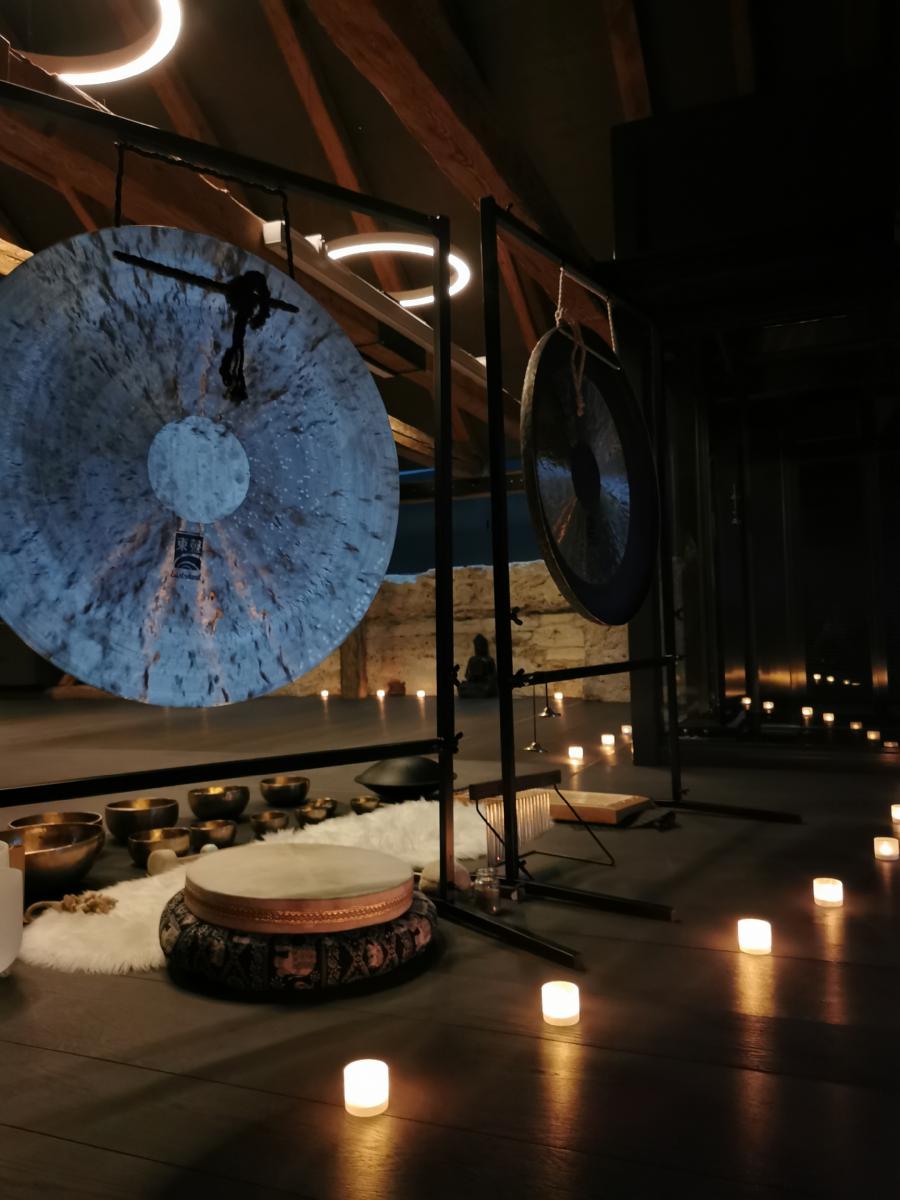 Tauche ein in ein Meer aus Instrumenten wie: Tibetanische Klangschalen, drei großen Gongs, Monochord, Kristallschalen, Ocean Drum, Koshi und vielen mehr.